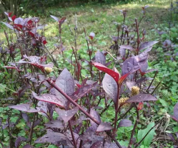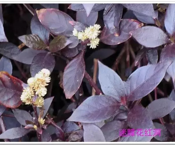 大叶红草,学名Alternanthera dentata (Moench) Scheygr.'Ruliginosa',是苋科、虾钳菜属的多年生草本植物,生性强健,耐热、耐旱、耐瘠、耐剪。大叶红草为多年生草本,茎叶铜红色,冬季开花,花乳白色,小球形,酷似千日红。生性强健,耐热、耐旱、耐瘠、耐剪。可在花台、庭园丛植、列植及在高楼大厦中庭美化,以强调色彩效果。