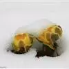 花单生茎顶端,无毛,在开花时围在茎近顶部的叶中;萼片约5,膜质,狭菱形或狭卵形,长约8毫米;花瓣约8,橙黄色,下部黑紫色,倒披针形,长约10毫米;花药宽椭圆形或近球形,长约0.8毫米;心皮多数,子房狭卵形,有1条背肋,顶部渐狭成短花柱。瘦果卵球形,长约3.5毫米,脉网隆起,有明显的背肋和腹肋。6月开花。