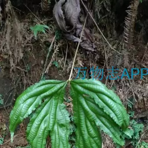 植株高60-90厘米。根状茎长而横走,木质,被钻状黑色披针形鳞片。叶远生;叶柄长30-60厘米,灰棕色或淡禾秆色;叶片纸质,下面沿主脉疏生灰棕色有节的硬毛,长20-30厘米,宽30-60厘米,中部分裂成两部分相等的扇形,每扇又再深裂为4-5部分,裂片宽5-8厘米,顶部再度浅裂,末回裂片短尖头,边缘有粗锯齿。主脉多回二歧分叉,小脉网状,网眼内有单一或分叉的内藏小脉。孢子囊群小,近圆形,散生于网脉交结点上,被浅杯状的隔丝覆盖。