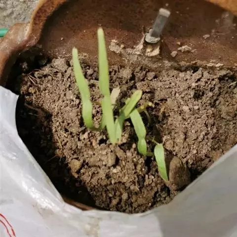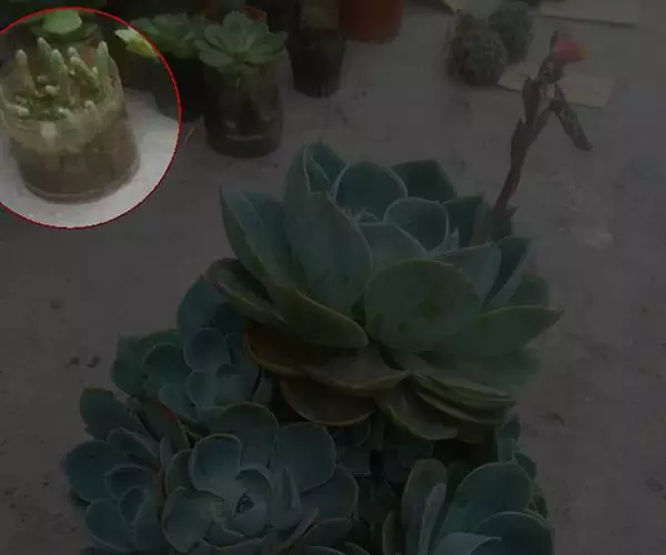 休眠中的碧光环如图所示,当秋天慢慢来临,温度降低到25℃,它们也就慢慢的苏醒了。这个时候可以浇透水,碧光环不怕水,土壤透气,干透浇透就可以的。碧光环的根系很发达,建议用深点盆养。