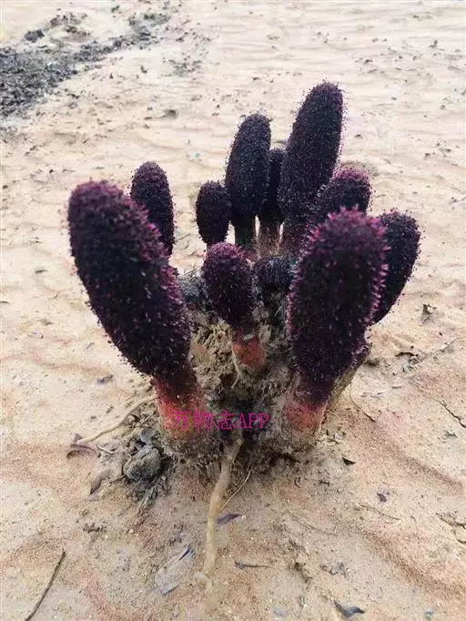 多年生肉质寄生草本,无叶绿素,全株红棕色,高15-100厘米,大部分埋于沙中。