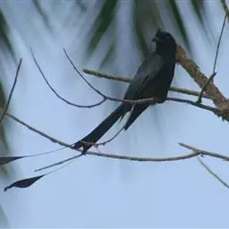 小盘尾(学名:Dicrurus remifer)是雀形目卷尾科的鸟类。体型较小,全长约48厘米。通体黑色,具金属光泽;嘴形强健,嘴峰稍曲,先端具钩;嘴基前额羽形成簇状绒黑羽丛;初级飞羽10枚,一般翅形长而稍尖;尾长而呈叉状;尾羽10枚,最外侧一对尾羽甚形延长,羽干部分裸出,其尾羽末端的内外翈呈彼此相称的“盘状尾”。跗蹠短而强健,前缘具盾状鳞。主要栖息于热带雨林,季雨林,低山丘陵和山脚平原地带的常绿阔叶林和次生林中,单个或成对活动,以蝗虫、蚱蜢等昆虫为食,也吃蜥蝎、蛙等小型脊椎动物。分布于喜马拉雅山南麓、缅甸、泰国、柬埔寨和中国。