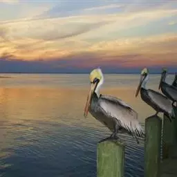褐鹈鹕:是鹈鹕家族中体型最小的成员。体型粗大,体重6.5-9千克。嘴形宽大直长,上嘴尖端朝下弯曲,…