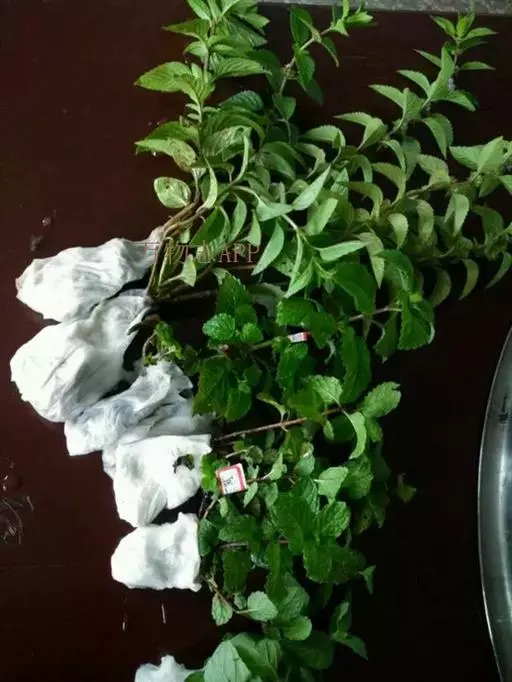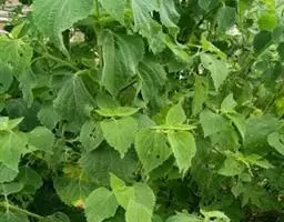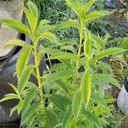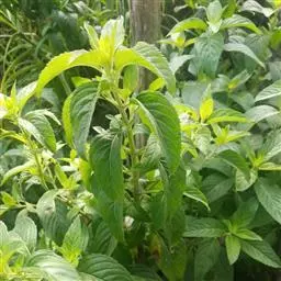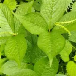 叶对生,长圆状披针形至椭圆形,长8-10厘米,宽3-5厘米,顶端锐尖,叶面较平展,叶色鲜绿至暗绿,网状脉下陷,叶边锯齿深而锐,叶柄长1-2厘米,被茸毛。
