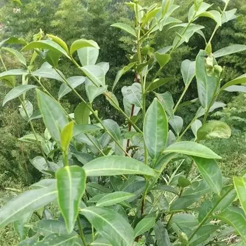 灌木,高达3m,嫩枝无毛,或最初开放的新枝有微毛,很快变秃净。叶革质,卵状披针形或椭圆形,长5~8cm,宽1.5~2.5cm,先端渐尖至尾状渐尖,基部楔形或略圆,上面干后黄绿色,发亮,下面浅绿色,无毛;侧脉6~7对,在上面略下陷,在下面不明显;边缘密具细锯齿,齿刻相隔1~1.5mm,叶柄长3~5mm,略有残留短毛。