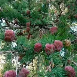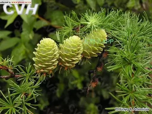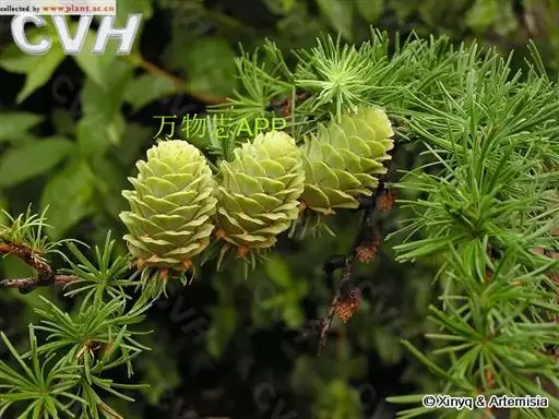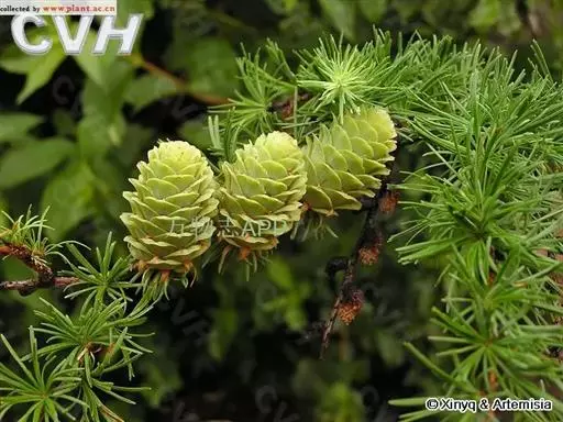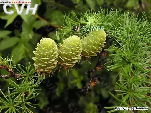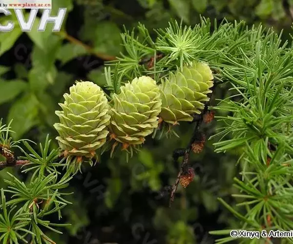 乔木,高达30米,胸径1米;树皮暗褐色,纵裂粗糙,成鳞片状脱落;枝平展,树冠塔形;幼枝有淡褐色柔毛,后渐脱落,一年生长枝淡黄色或淡红褐色,有白粉,直径约1.5毫米,二、三年生枝灰褐色或黑褐色;短枝上历年叶枕形成的环痕特别明显,直径2~5毫米,顶端叶枕之间有疏生柔毛;冬芽紫褐色,顶芽近球形,基部芽鳞三角形,先端具长尖头,边缘有睫毛。叶倒披针状条形,长1.5~3.5厘米,宽1~2毫米,先端微尖或钝,上面稍平,下面中脉隆起,两面均有气孔线,尤以下面多而明显,通常5~8条。雄球花淡褐黄色,卵圆形,长6~8毫米,径约5毫采;雌球花紫红色,苞鳞反曲,有白粉,先端三裂,中裂急尖。球果卵圆形或圆柱状卵形,熟时黄褐色,长2~3.5厘米,径1.8~2.8厘米,种鳞46~65枚,上部边缘波状,显著地向外反曲,背面具褐色瘤状突起和短粗毛;中部种鳞卵状矩圆形或卵方形,长1.2~1.5厘米,宽约1厘米,基部较宽,先端平截微凹;苞鳞紫红色,窄矩圆形,长7~10毫米,基部稍宽,上部微窄,先端三裂,中肋延长成尾状长尖,不露出;种子倒卵圆形,长3~4毫米,径约2.5毫米,种翅上部三角状,中部较宽,种子连翅长1.1~1.4厘米。花期4~5月,球果10月成熟。
