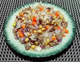 米是五谷之首,米饭更是人们日常饮食中的主角之一;一味米饭,与五味调配,几乎可以供给全身所需营养。米饭的主要成分是碳水化合物,米饭中的蛋白质主要是米精蛋白,氨基酸的组成比较完全,人体容易消化吸收。糙米饭中的矿物质、膳食纤维、B族维生素(特别是维生素B1)含量都较精米米饭中的要高。 酱油炒饭
