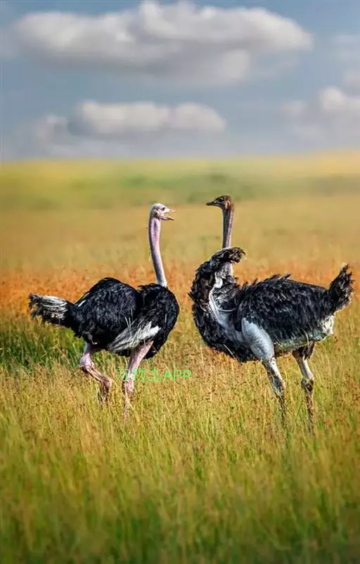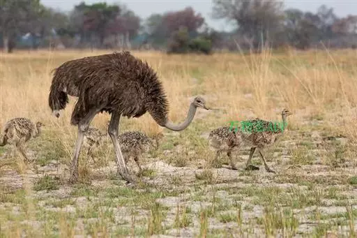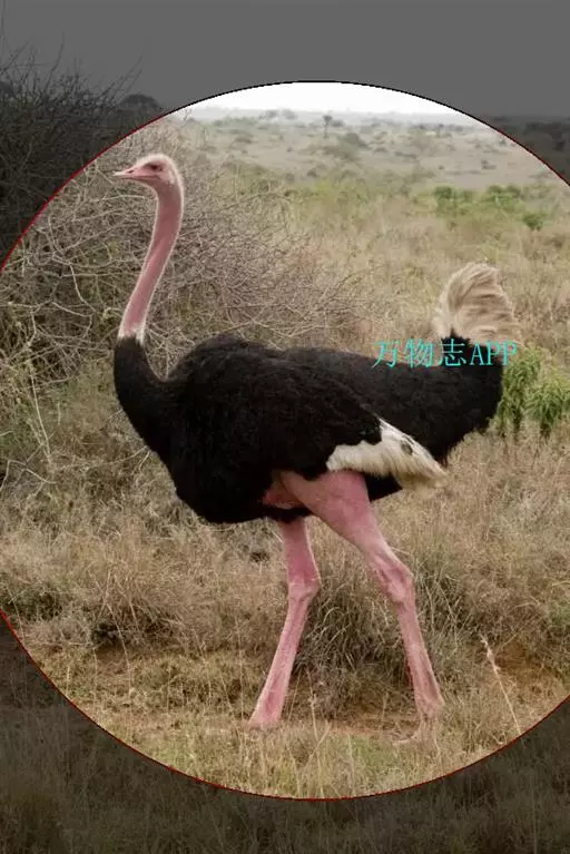 非洲鸵鸟(学名:Struthio camelus)属鸵形目鸵鸟科,是世界上最大的一种鸟类,成鸟身高可达2 .5米,雄鸵鸟体重可达150千克。像蛇一样细长的脖颈上支撑着一个很小的头部,上面有一张短而扁平的、由数片角质鞘所组成的三角形的嘴,主要特点是龙骨突不发达,不能飞行,也是世界上现存鸟类中唯一的二趾鸟类,在它双脚的每个大脚趾上都长有长约7厘米的危险趾甲,后肢粗壮有力,适于奔走。