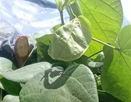 危害植株叶片。被害叶初呈黄白色小斑点,后逐渐扩展至全叶,造成叶片卷曲、枯黄脱落。