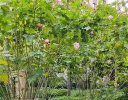 芙蓉花 木芙蓉在防止水土流失的生态防护中作用十分显著,因其拥有盘根错节的根系,也有能向土壤内部伸展的侧根,这样使根系与土壤接触的面积不断增大,同时根系与土壤的固着强度也大大增加,从而有助于边坡稳定性的增强。
