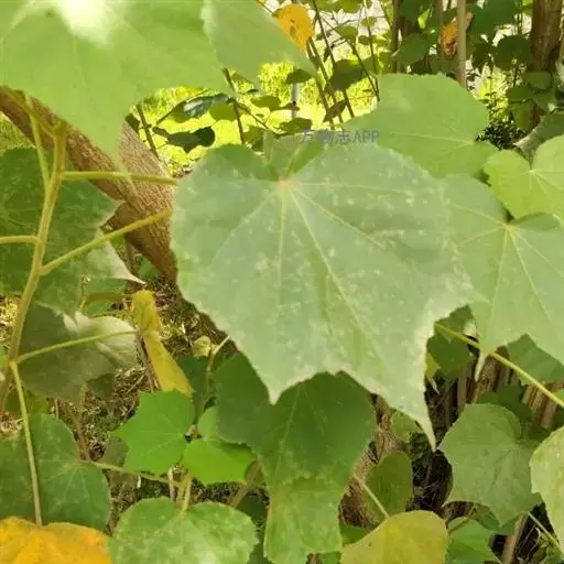 主要危害叶片,危害严重时可引起植株衰弱及叶片变黄、早枯。早期叶片正面出现多个小斑,接着小斑汇合成没有明显边缘的白粉状大斑,秋末在白粉处产生黑褐色小颗粒。