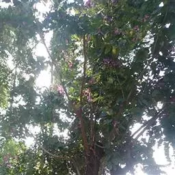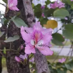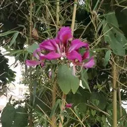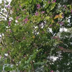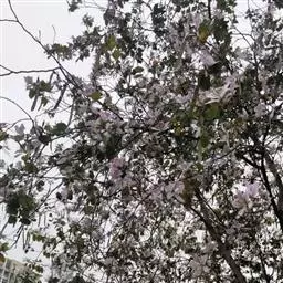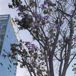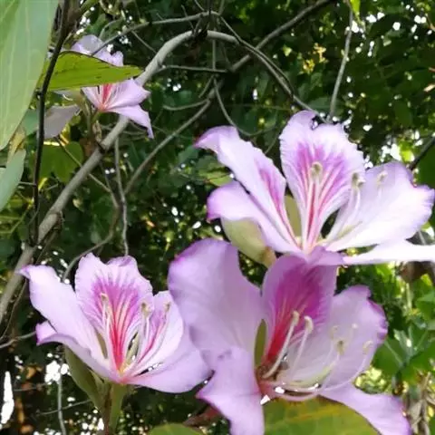 洋紫荆:落叶乔木;树皮暗褐色,近光滑;幼嫩部分常被灰色短柔毛;枝广展,硬而稍呈之字曲折,无毛。叶近…