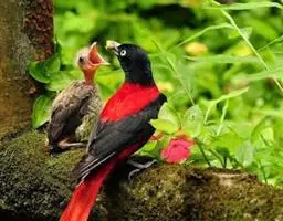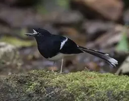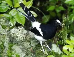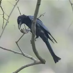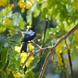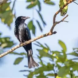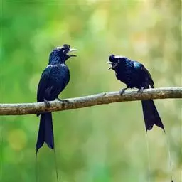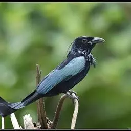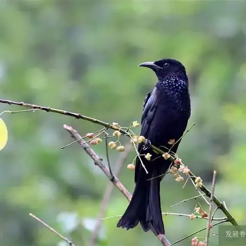 发冠卷尾(学名:Dicrurus hottentottus)是中型鸟类,体长28-35厘米。通体绒黑色缀蓝绿色金属光泽,额部具发丝状羽冠,外侧尾羽末端向上卷曲。栖息于海拔1500米以下的低山丘陵和山脚沟谷地带,多在常绿阔叶林、次生林或人工松林中活动。单独或成对活动,很少成群。主要在树冠层活动和觅食,树栖性。主要以金龟甲、金花虫、蝗虫、蚱蜢、竹节虫、椿象、瓢虫、蚂蚁、蜂、蛇、蜻蜓、蝉等各种昆虫为食。分布于中国、印度、缅甸、老挝、泰国、越南、中南半岛、菲律宾和印度尼西亚。