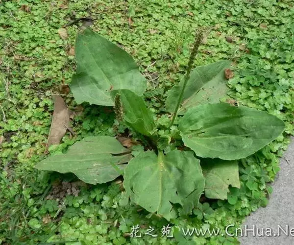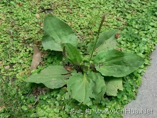 大车前(学名:Plantago major L.)多年生草本。根状茎短粗,具须根。基生叶直立,叶片卵形或宽卵形,顶端圆滑,边缘波状或不整齐锯齿;叶柄明显长于叶片。花茎直立,穗状花序占花茎的1/3-1/2;花密生,苞片卵形,较萼裂片短,二者均有绿色龙骨状突起;花萼无柄,裂片椭圆形;花冠裂片椭圆形或卵形。蒴果椭圆形,种子8-15,少数至18,棕色或棕褐色。花期6-8月,果期7-9月。生于草地、草甸、河滩、沟边、沼泽地、山坡路旁、田边或荒地,海拔5-2800米。分布欧亚大陆温带及寒温带。以全草入药,在秋季采收全草,采收时挖起全株,洗净泥砂,除去枯叶,晒干即可。