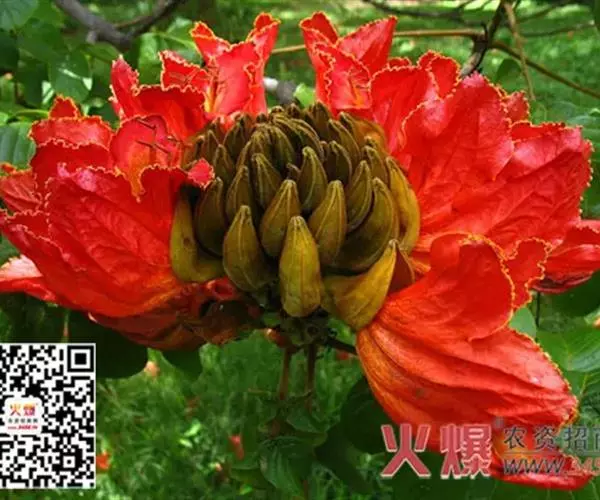 又因其花朵形似郁金香,故英文名意为郁金香树。在热带非洲,其花朵可储存雨水或露水,故称之喷泉树。