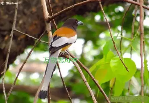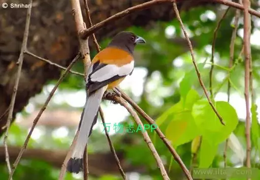 黑额树鹊是雀形目、鸦科的鸟类,体长约38厘米。黑色的尾甚长,上背、背、下腹及尾覆羽棕色。…