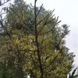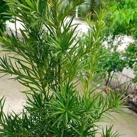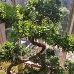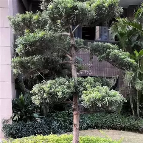 罗汉松为乔木,终年常绿,风姿朴雅,植株高可达 18 公尺,但亦可修剪使保持低矮,树皮充满皱褶。