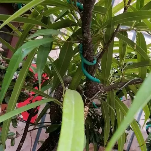 叶互生,螺旋状排列(形似莲台),先端尖突单叶,叶形为线形或狭披针形,叶基锐形,叶端渐尖形或圆形,叶缘全缘(形似金刚杵)、不规则,边缘略反卷,主脉明显,叶上下表面光滑,革质。