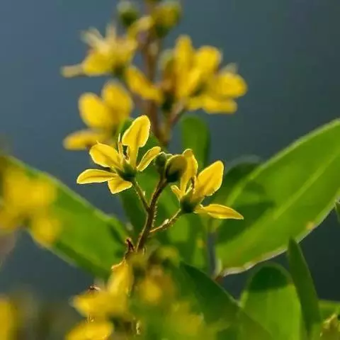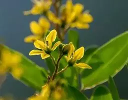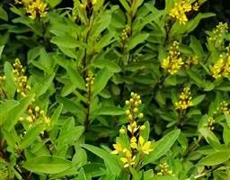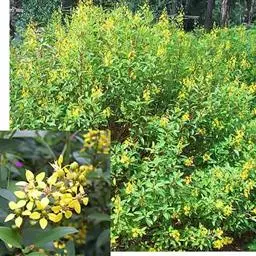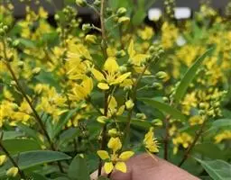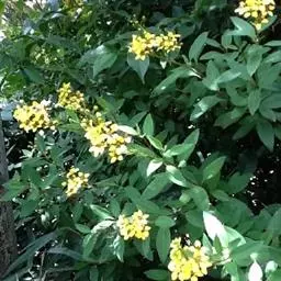 金英常绿灌木,株高约50-160厘米,嫩茎红色。叶片绿色,对生,椭圆形,先端尖,基部楔形,全缘。…