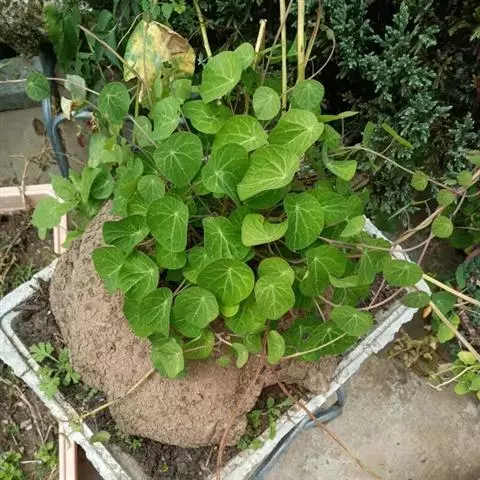 定植时间在育苗当年的4月下旬至5月上旬,选择阴雨天进行。定植方法把袋苗分层运到种植地后,在土堆中间挖一个长宽深为15厘米的坑、去除营养袋,带土把黄藤苗种植下去,注意不要给营养土团松散,然后,覆盖土壤,以盖过营养土团1-2厘米为度,轻压,淋足定根水。插枝引蔓定植后,当幼苗生长高度达到40厘米-50厘米时,应及时用竹竿或木杆搭成“人”字架,让天仙藤进行攀爬。靠近作遮阳乔木的用竹竿引蔓搭靠在树干上,可以省去搭架,用树干作为天仙藤攀爬的支架。形成乔、藤结合的立体生态种植系统。
