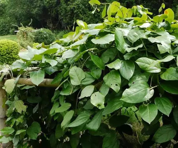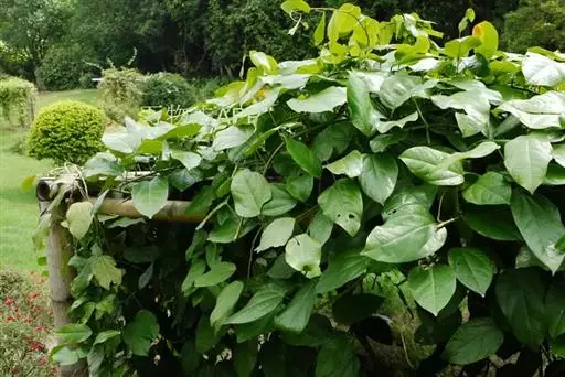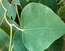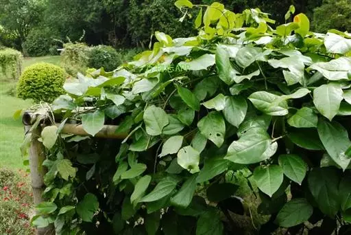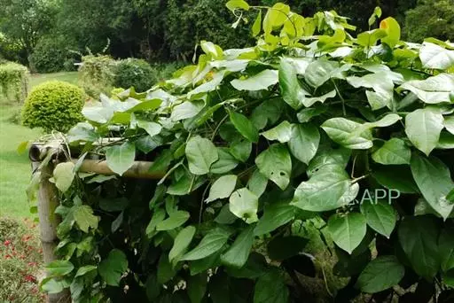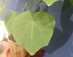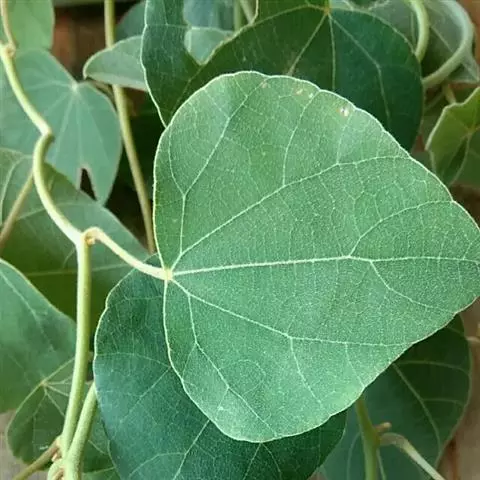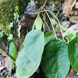 木质大藤本,长可达10余米或更长,茎褐色,具深沟状裂纹,小枝和叶柄具直纹。叶革质,长圆状卵形,有时阔卵形或阔卵状近圆形,长约10-25厘米,宽约2.5-9厘米,顶端近骤尖或短渐尖,基部圆或钝,有时近心形或楔形,两面无毛;掌状脉3-5条,中脉每边通常有3条侧脉,连同网脉均在下面凸起;叶柄长5-14厘米,呈不明显盾状着生。