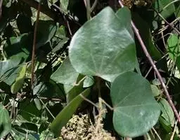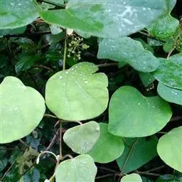 天仙藤(学名:Fibraurea recisa Pierre.)为防己科天仙藤属攀援藤本植物,茎褐色,叶革质,长圆状卵形,有时阔卵形或阔卵状近圆形,圆锥花序生无叶老枝或老茎上,核果长圆状椭圆形,黄色,外果皮干时皱缩。花期春夏季,果期秋季。