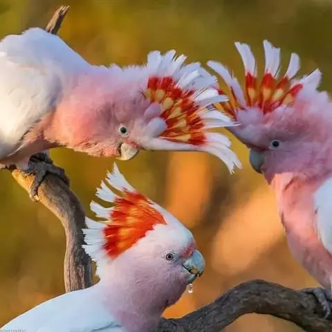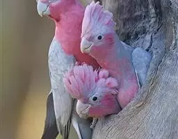米切氏凤头鹦鹉 米切氏凤头鹦鹉3、4岁时开始有繁殖的能力,在求偶时雄鸟喂食雌鸟的行为较少,但常互相理毛,通常筑巢在水源地附近,产卵前雄鸟与雌鸟会一起收集枯枝树叶准备巢穴,窝卵数约为2至4颗,孵化需26天,8星期后幼鸟的羽毛差不多全部长齐,也有些会与粉红胸 凤头鹦鹉杂交,