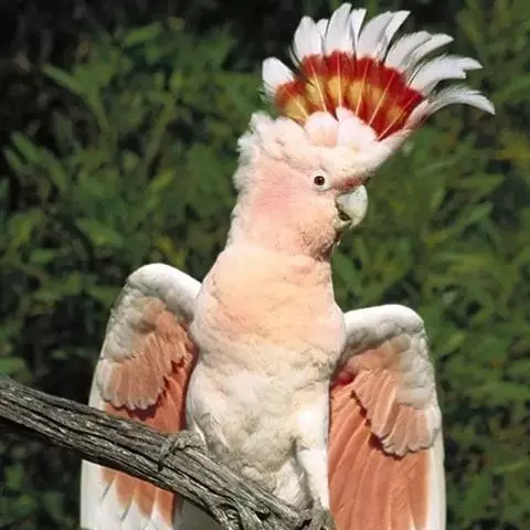 米切氏凤头鹦鹉:是鹦形目凤头鹦鹉科的鸟类。体羽白色,头上有红黄相间、色泽分明的美丽的冠羽,…
