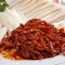 京酱肉丝,是一道知名度很高的菜肴,它是北京菜中的经典代表菜之一。制作时选用猪瘦肉为主料,辅以甜面酱…