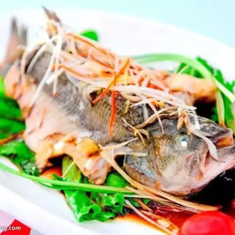 清蒸过江鱼是一道美食,由活鲤鱼、葱等原料做成。