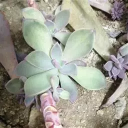 紫珍珠是景天科石莲花属的多年生肉质草本植物。植株中小型;叶片肉质,匙形,呈莲座状紧密排列;叶片粉紫色,…