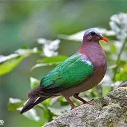 绿背金鸠体长约25厘米,是中等体型、尾甚短的地栖型斑鸠。下体粉红,头顶灰色,额白,腰灰,两翼具亮绿色。…