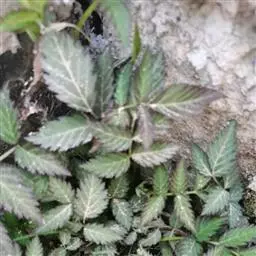 叶互生,三角状卵形或卵圆形,顶端长渐尖,基部圆形、截形或微心形,边缘有尖锐重锯齿,两面绿色,上面无毛或有稀疏柔毛,下面沿脉或脉腋有柔毛;叶柄长5-10毫米,无毛;托叶膜质,带状披针形,有缘毛,早落。