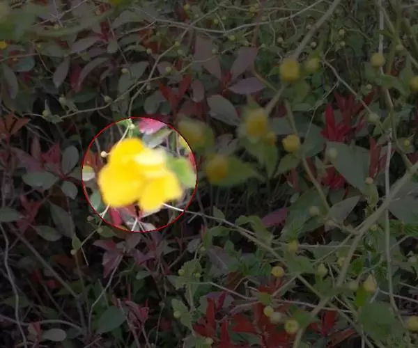 单花,着生在当年生侧枝顶端,花梗无毛;花直径2.5-6厘米;萼片卵状椭圆形,顶端急尖,有小尖头,全缘,无毛,果时宿存;花瓣黄色,宽椭圆形,顶端下凹,比萼片长1-4倍。