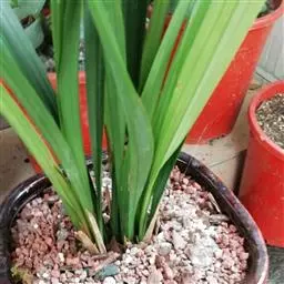 上盆(或翻盆)时间一般在春季3-4月或秋季10-11月。花盆以口小、盆深、底孔大的为佳。新从山上挖来的野生苗需理植于瓦盆(泥盆)中,这样兰花泥易干,通气性好.容易发根;2-3年后方可换人紫砂盆或瓷盆。兰花种植(在盆中)的方法与一般花卉不同,尤其是名种兰花,翻种移盆必须洗根。方法足将根浸入清水中,用旧牙刷或毛笔轻轻洗刷,切勿用力过大伤根;用剪刀将残叶、黄叶、断裂根、发黑腐烂根剪去,注意勿伤幼芽。然后将处理好的植株放在阴凉通风处晾干,待根部发白并显细小皱纹柔软时,再植入盆中。