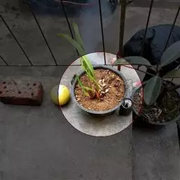 方法一 准备好兰盆及植料后,将兰株倒拿(根在上,叶在下)放于水龙头下以慢水冲洗,但水压切忌过强,以免伤兰根及叶子。用拇指和食指抓住兰头,小指抵住盆缘,用竹筷将根固定,当放入盆内时,尽量不要让根接触到盆壁。将豆粒大的混合石砾倒入盆底至三分之一处。然后倒入中粒植料至五分之四处,填实和尽量不要留下空间。将竹筷拔出,并摇实盆中植料。填实植料后,再用大粒植料埴入至距盆缘1.5厘米处。最后再倒入豆粒大植料,以将假鳞茎全部埋入土中为度,然后充分摇实。用压土工具轻压植料,并将表面弄平。种植完毕后,植料在盆中以中央稍高为好。