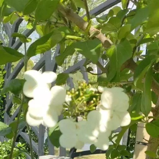 琼花Viburnum macrocephalum Fort. f. keteleeri (Carr.) Rehd.,又称聚八仙、蝴蝶花,与昙花相似,像牛耳抱珠。忍冬科落叶的半常绿灌木。4、5月间开花,花大如盘,洁白如玉。聚伞花序生于枝端,周边八朵为萼片发育成的不孕花,中间为两性小花。分布于江苏南部、安徽西部、浙江、江西西北部、湖北西部及湖南南部。也是扬州、昆山的市花。