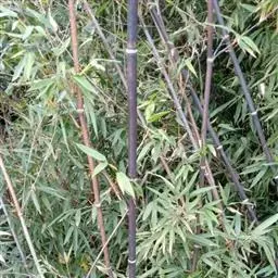 斑竹(学名:Phyllostachys bambusoides Sieb. et Zucc. f. lacrima-deae Keng f. et Wen)是禾本科,刚竹属乔木或灌木状竹类植物。竿高可达20米,幼竿无毛,竿环稍高于箨环。竿有紫褐色或淡褐色斑点。箨鞘革质,箨耳紫褐色,繸毛通常生长良好,箨舌拱形,箨片带状,中间绿色,两侧紫色,边缘黄色,叶耳半圆形,叶舌明显伸出,花枝呈穗状,每片佛焰苞腋内有的假小穗,小穗披针形,外稃被稀疏微毛,内稃稍短于其外稃,鳞被菱状长椭圆形,花柱较长,柱头羽毛状。笋期5月下旬。
