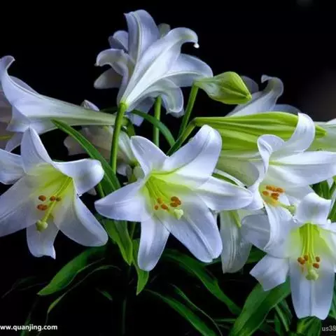 青岛百合是百合科百合属的多年生草本植物;鳞茎近球形;鳞片披针形,白色,无节;叶轮生,…