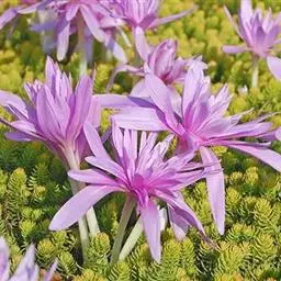 观赏:秋水仙叶片线形,花茎婷婷玉立,花茎和花朵,多为粉红至紫红色,宜作盆栽。