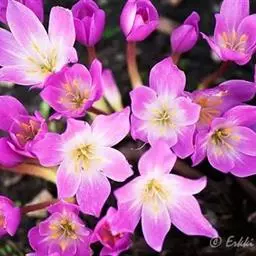 秋水仙(学名:Colchicum autumnale L.)是百合科秋水仙属植物,多年生草本。地下部分也具有圆球形的鳞茎。它的这种鳞茎,有的直径可长至6厘米以上。球根花卉,球茎卵形,外皮黑褐色。叶披针形,暗绿色,长约30厘米。每开花1-4朵,花纺形,开放时漏斗形。蒴果,种子多数,呈不规则的球形,褐色。8-10月开花,翌年春天长叶。 [1-2]