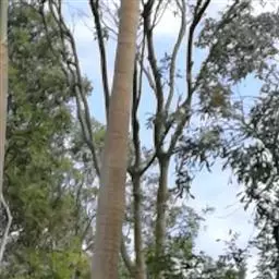 尤加利树,是桃金娘科、桉属植物的统称。常绿高大乔木,约六百余种。 常绿植物,一年内有周期性的枯叶脱落的现象,大多品种是高大乔木,少数是小乔木,呈灌木状的很少。树冠形状有尖塔形、多枝形和垂枝形等。单叶,全缘,革质,有时被有一层薄蜡质。叶子可分为幼态叶、中间叶和成熟叶三类,多数品种的叶子对生,较小,心脏形或阔披针形。