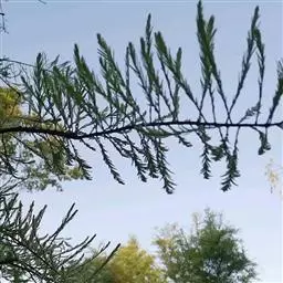 乔木,高达30m,胸径达2m;树干通直,树皮灰褐色;枝条开展或下垂;小枝密生,纤细,下垂或向上伸展。