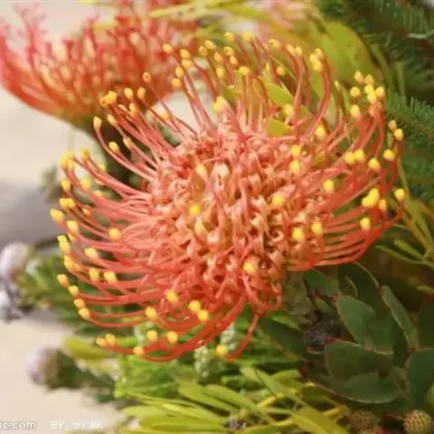 针垫花是山龙眼科针垫花属的常绿蔓生灌木。植株多分枝;叶轮生,有针状、心形、矛尖形等,叶缘和叶尖有锯齿,…