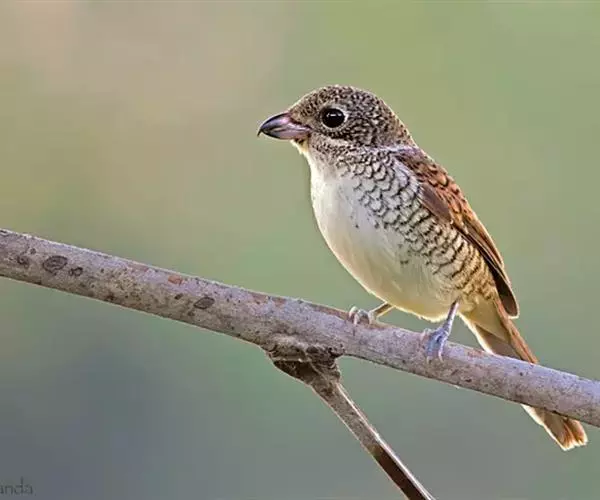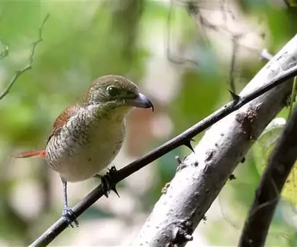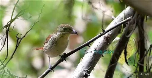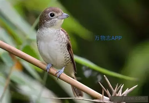 虎纹伯劳(学名:Lanius tigrinus):全长165毫米左右。雄性成鸟:额基、眼先和宽阔的贯眼纹黑色;前额、头顶至后颈蓝灰色;上体余部包括肩羽及翅上覆羽栗红褐色,杂以黑色波状横斑;飞羽暗褐色,外翻具棕褐色羽缘;尾羽棕褐色,具不明显的褐色横斑,外侧尾羽端缘棕白色;下体纯白色,两胁略沾蓝灰色;覆腿羽白杂以黑斑。雌性成鸟羽色与雄鸟相似,但前额基部黑色较小,眼先及过眼黑纹沾褐,头顶灰色及背羽的栗褐色均不如雄鸟鲜艳;胁部缀以黑褐色鳞状横斑。