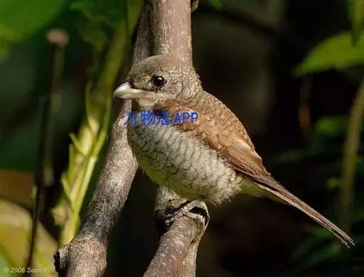 幼鸟,头顶与背羽均为栗褐色,满布黑褐色横斑,过眼纹褐色或不显著,下体的胸、胁部满布黑褐色鳞斑。
