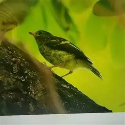 雌性成鸟:额基黑色斑较小;眼先和眉纹暗灰白色;胸侧及两胁白色,杂有黑褐色横斑;余部与雄鸟相似,但羽色不及雄鸟鲜亮。
