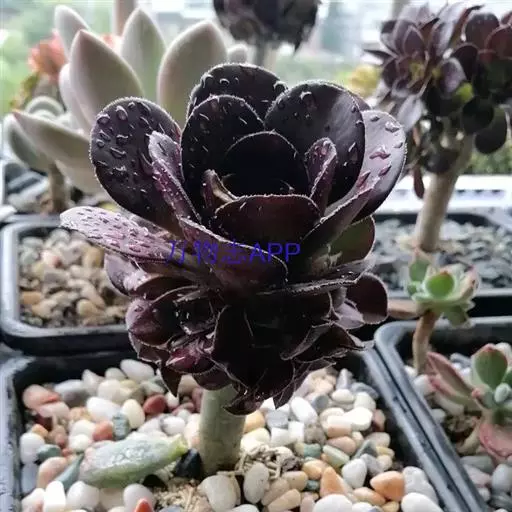 黑宝石:(Black stones)景天 黑法师黑宝石 科莲花掌属植物。为黑法师的变异种,叶短成半圆形,如一朵莲花,叶片紧凑,生长在肥沃又排水透气良好的沙质土种植,冷凉季节生长。