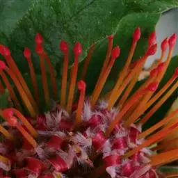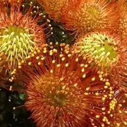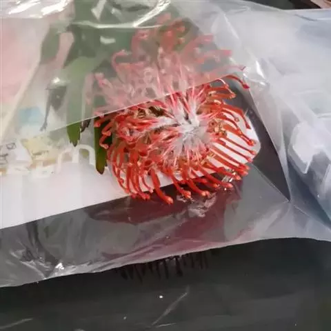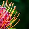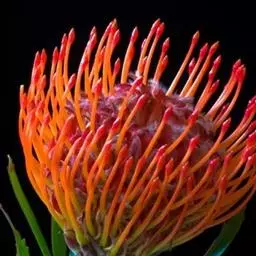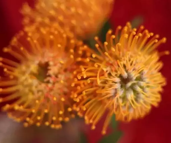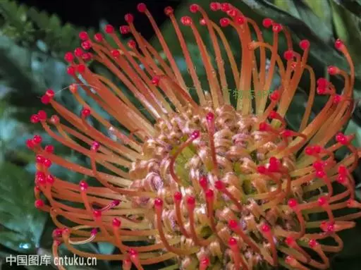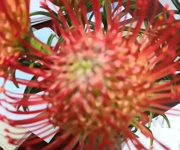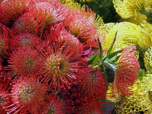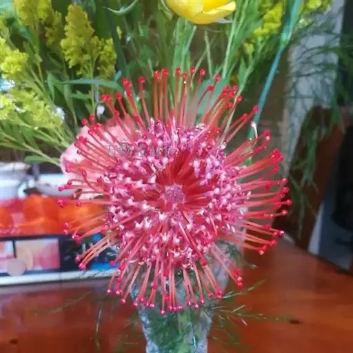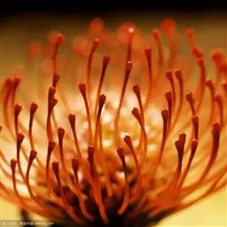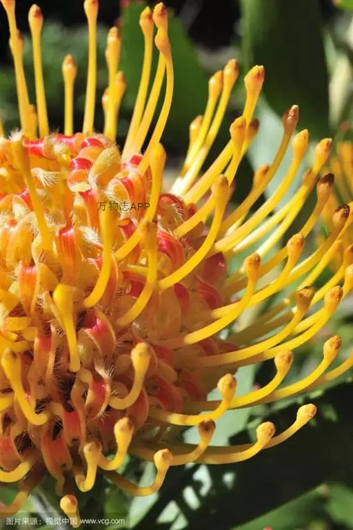 针垫花,形如其名,花朵盛开时像大头针插在球形的针垫上,非常少见,十分美丽。颜色鲜艳夺目,五色缤纷,很是招人喜爱,常见的颜色有红色、黄色、橙色等。其实我们所见到的拳头般大小花球是由无数个小花朵组成的,那伸出的“针头”正是一个个舞动的花蕊。据了解,在南非针垫花开的季节还有一个非常吸引人的景色,那就是无数个围绕在花丛中的小鸟。针垫花不能自花授粉,必须以丰富的花蜜吸引了各种各样的昆虫,而这些昆虫必须穿越密布的“针林”才能享受到甜美的花蜜,而昆虫正是小鸟们猎食的对象。正是这样,针垫花不仅吸引了观花者,同时也吸引了众多观鸟者。