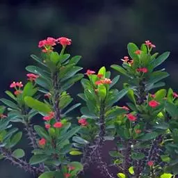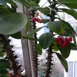 虎刺梅:别称铁海棠,是蔓生灌木植物。茎多分枝,长60-100厘米,直径5-10毫米,具纵棱,密生硬…
